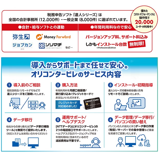 株式会社オリコンタービレは「達人シリーズ」特約店として販売および導入サポート・運用サポートを行っています
